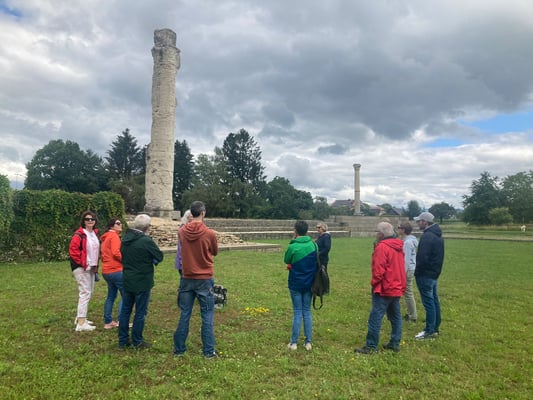 Unser Theater-Mitglied und Reiseleiterin Conny hatte für uns ein abwechslungsreiches Programm zusammengestellt. Im Weingut Andrey in Schafis erwartete uns - trotz Dauerregen - eine interessante Führung durch die Reben mit Verkostung. Gestärkt ging es weiter ins malerische Städtchen Murten, wo wir uns gleich ins Getümmel des Volksfestes "Solennitat" stürzten und natürlich für gute innerschweizerische Stimmung sorgten. Nach einer mehr oder minder kurzen Nacht ging es zurück in die Vergangenheit, in die römische Siedlung von Avenches. Mit viel neuem Wissen, der Sonne im Herzen und guter Stimmung kamen wir am Sonntagabend wieder in Hildisrieden an.